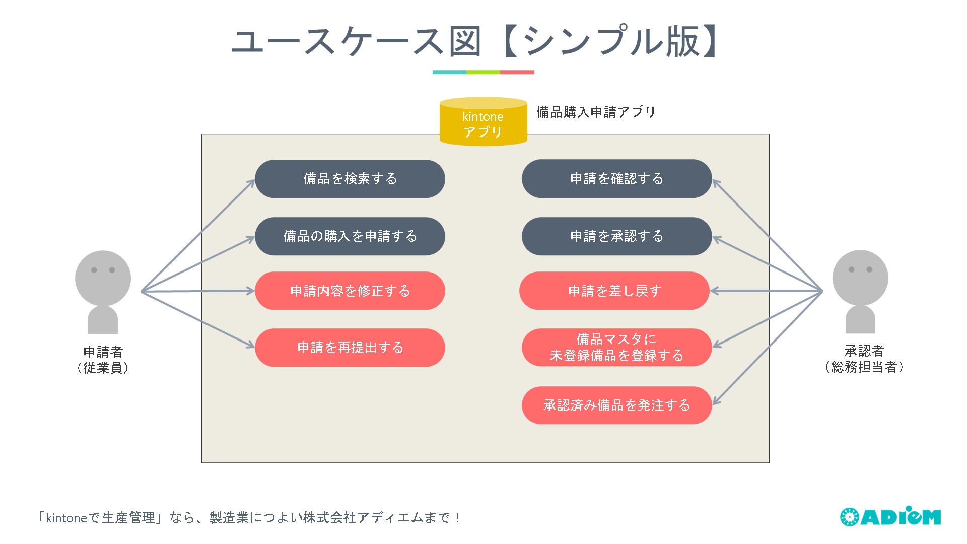 | 10 | 承認者(総務担当者) | 申請が承認されたとき | 承認済み備品を発注する | 実際に備品を購入するため |