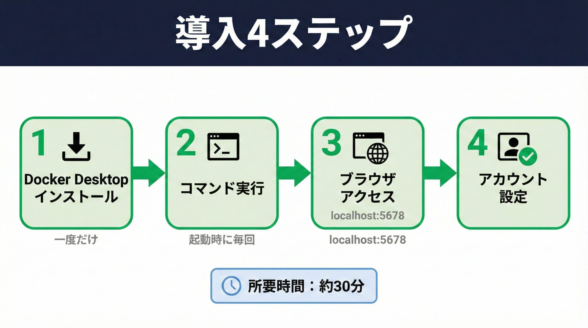 - 導入ハードルが低い:Docker Desktopで30~40分あれば試用開始