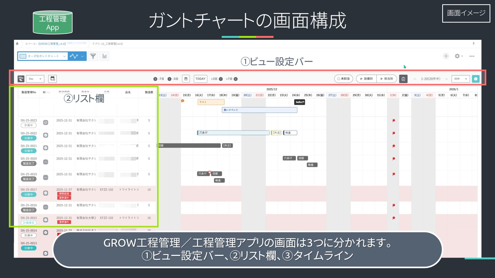 使用アプリ:工程管理アプリ(日程計画画面)