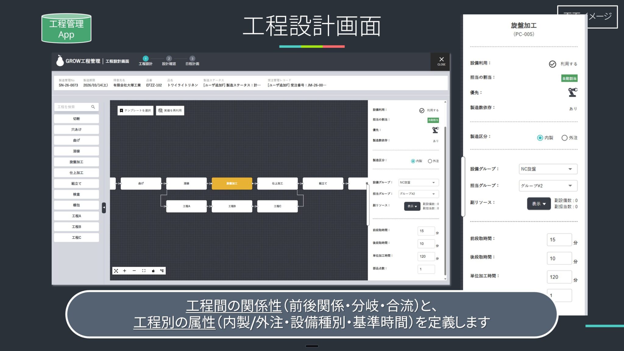 使用アプリ:工程管理アプリ(製造工程設計画面)