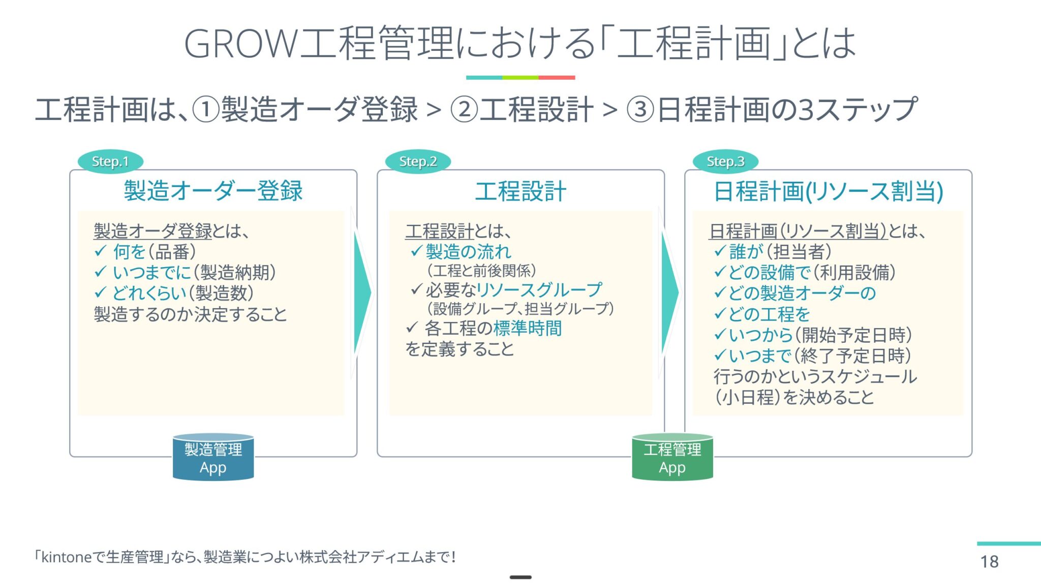 「GROW工程管理 on kintone」は、多品種小ロット・受注生産型の製造業に特化した、kintone上で動く工程管理・生産スケジューラです。