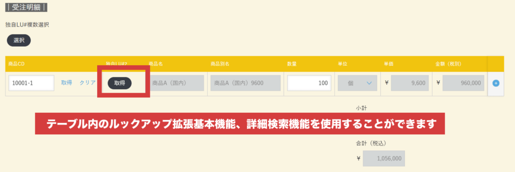 | 3 | テーブルの1行ルックアップ拡張機能 | テーブルの行単位でルックアップ拡張の基本機能、1文字検索機能を使用できます | |