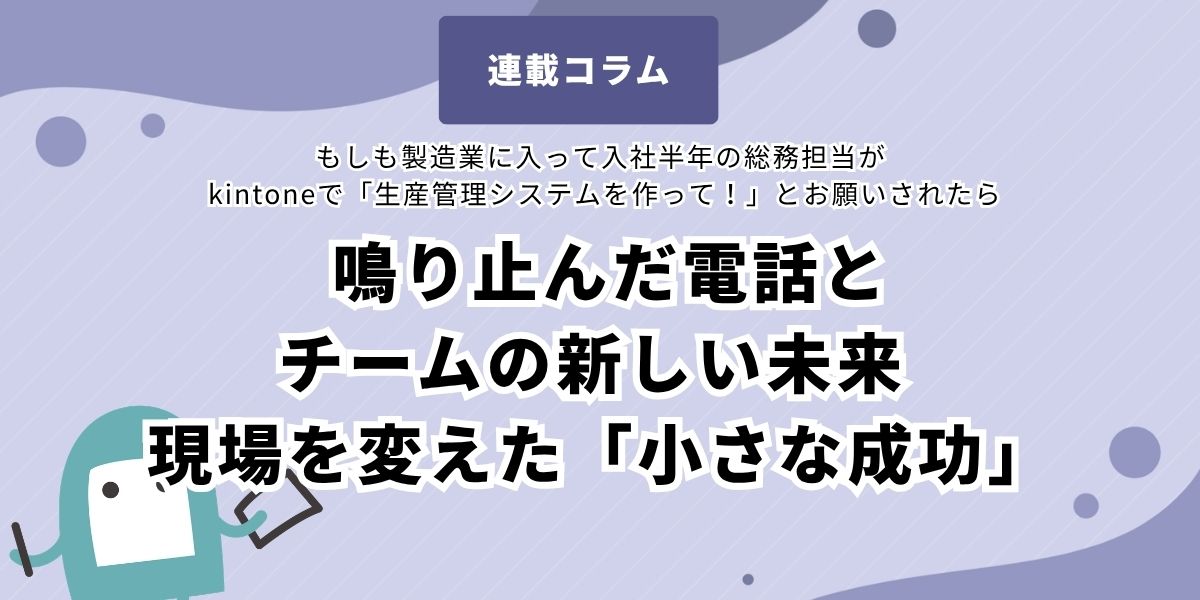 kintoneはボクが入社するタイミングで会社に導入されたので、基本的な使い方や簡単なアプリの作り方なら、なんとなくは分かっています。 でも、複数のアプリが連携するような「システム」なんて作った経験は一度もないんです! 何から手をつければいいのか、見当もつかない……。 「そもそも生産管理システムってなんやねん!どんなアプリがいるねん!?」 と思わず声が出るほど、完全に一人でテンパっています。 あ、いけない、テンパったときに出るボクの悪いクセ。 旅行代理店で働いていたとき、大阪出張が多くて関西弁が身についちゃったんですよ。 ともかく、製造業の知識も浅く、システム開発の経験もないボク。 思いがけず任されてしまった大役に、不安は募るばかりです。 それでも、地元に戻るときに心に決めた「地元の産業に少しでも役立ちたい」という思いを、もう一度奮い立たせました。 「できない理由を探すんじゃなくて、できる方法を探そう」 ひとまずkintoneのサンプルアプリをつなぎ合わせればなんとかなると思うので、やってみます。 次回のブログで、みなさんにジムリンが作った生産管理システムをお見せする予定です! " ["post_title"]=> string(112) "「kintoneで生産管理システムを構築せよ!」――総務のジムリンが受けた衝撃の指令" ["post_excerpt"]=> string(0) "" ["post_status"]=> string(7) "publish" ["comment_status"]=> string(6) "closed" ["ping_status"]=> string(6) "closed" ["post_password"]=> string(0) "" ["post_name"]=> string(17) "column-series-ep0" ["to_ping"]=> string(0) "" ["pinged"]=> string(0) "" ["post_modified"]=> string(19) "2026-02-20 10:27:24" ["post_modified_gmt"]=> string(19) "2026-02-20 01:27:24" ["post_content_filtered"]=> string(0) "" ["post_parent"]=> int(0) ["guid"]=> string(45) "https://adiem.jp/?post_type=blog&p=15116" ["menu_order"]=> int(0) ["post_type"]=> string(4) "blog" ["post_mime_type"]=> string(0) "" ["comment_count"]=> string(1) "0" ["filter"]=> string(3) "raw" } } ["post_count"]=> int(9) ["current_post"]=> int(-1) ["before_loop"]=> bool(true) ["in_the_loop"]=> bool(false) ["post"]=> object(WP_Post)#4811 (24) { ["ID"]=> int(16498) ["post_author"]=> string(2) "14" ["post_date"]=> string(19) "2026-03-20 12:09:34" ["post_date_gmt"]=> string(19) "2026-03-20 03:09:34" ["post_content"]=> string(19454) "