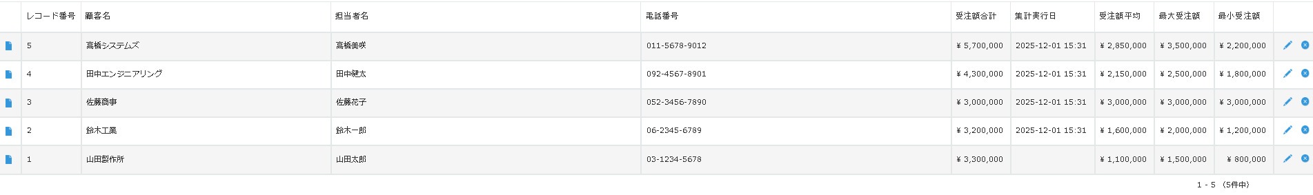 一覧画面にただ集計結果を表示させるだけではなく、データとして業務に活かせるのはうれしいポイントです!(^^)!